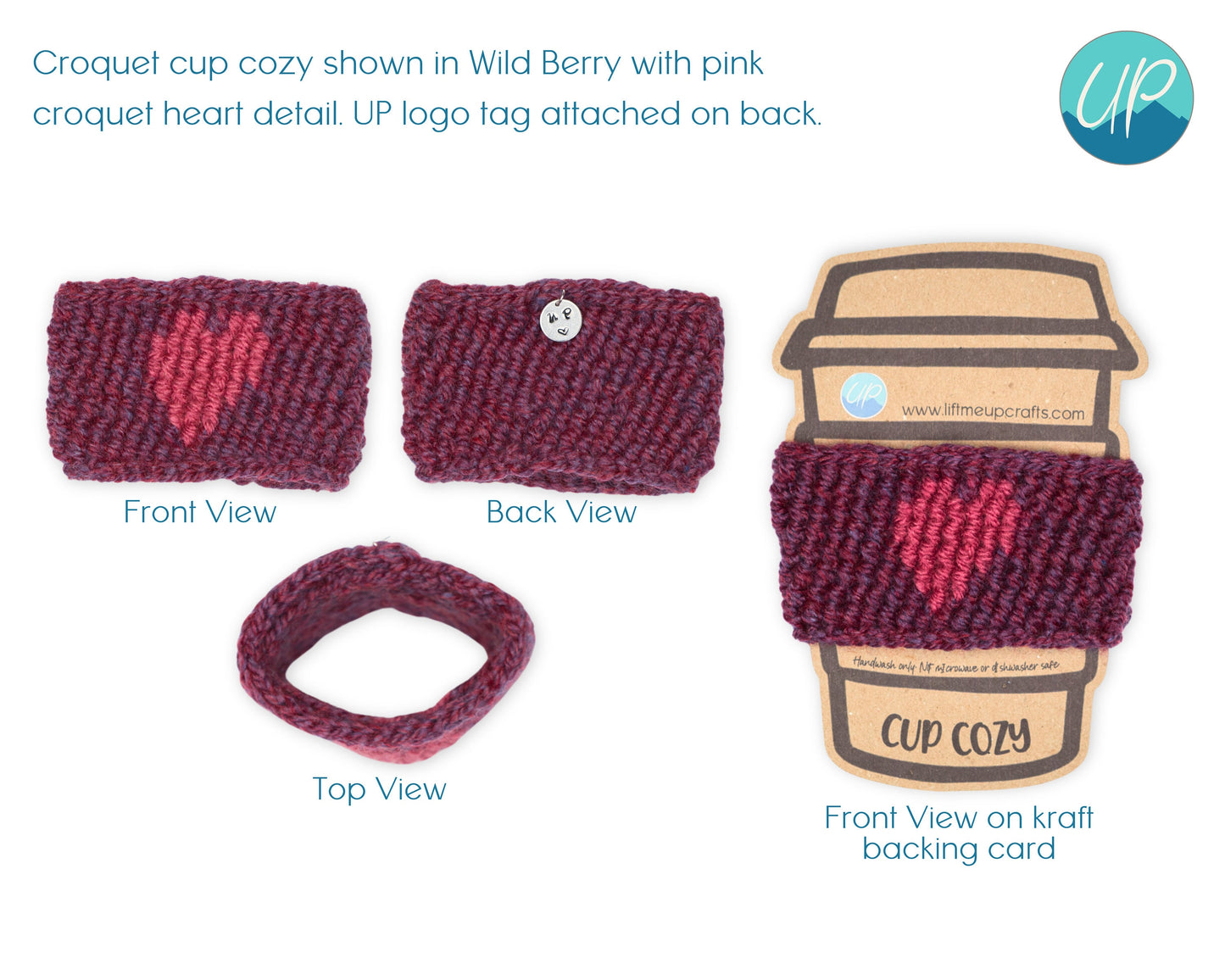 Cute Crochet Heart Cup Cozy - Wild Berry